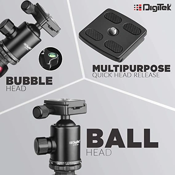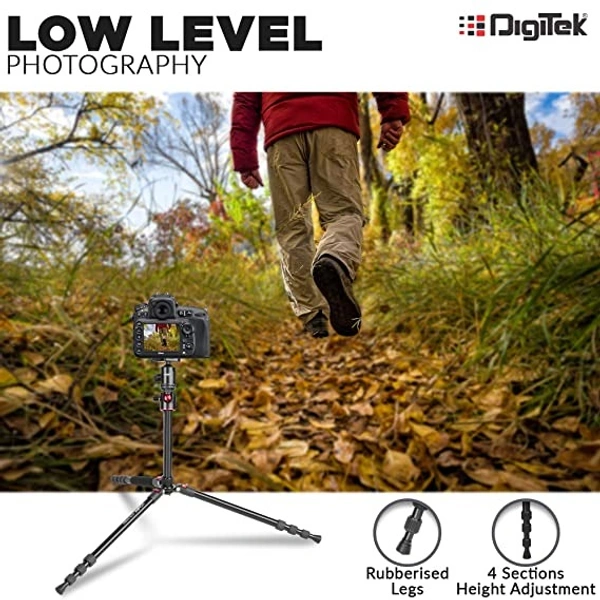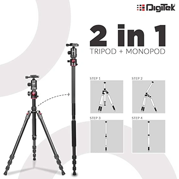 Digitek DTR 520 BH (60 Inch) Professional Aluminum Tripod Cum Monopod With Swivel Pan Head, For DSLR Camera | Maximum Operating Height: 4.95 Feet | Maximum Load Upto: 7kgs (Black) (DTR 520 BH)