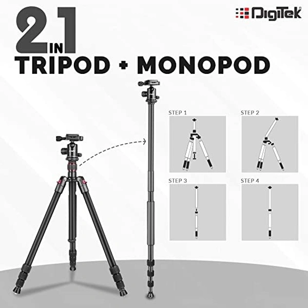 DIGITEK® (DTR-500BH) (152 Cm) Professional Aluminum Tripod Cum Monopod, With Swivel Pan Head, Maximum Operating Height : 1510 Mm, Maximum Load Upto: 7kgs (Black)