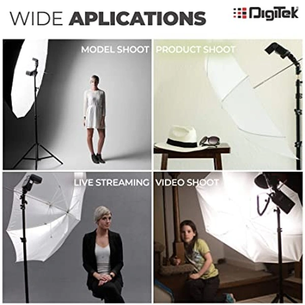 - Includes Umbrella Holder at the base of mount, able to adjust the Umbrella & Flash at different angles.