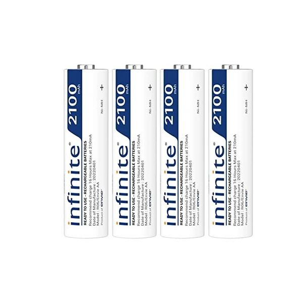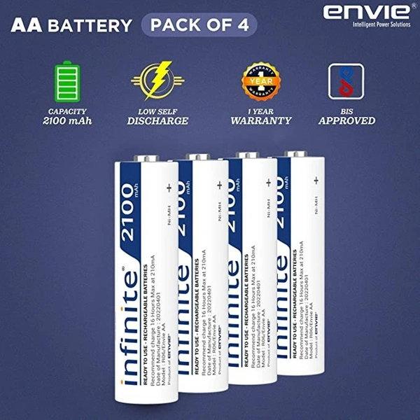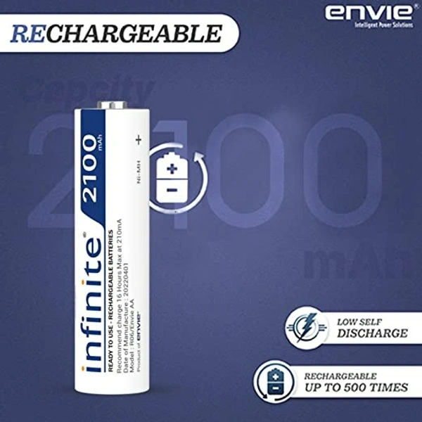 ENVIE® (AA2100RTU4PL) Infinite AA Rechargeable Batteries | High-Capacity Ni-MH | 2100 mAh | Low Self Discharge | (Pack of 4)