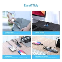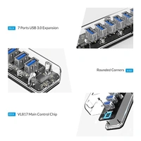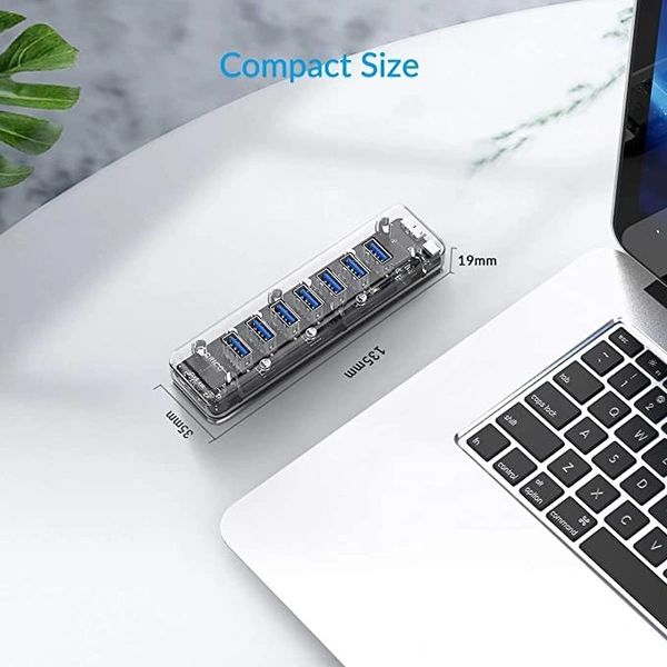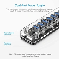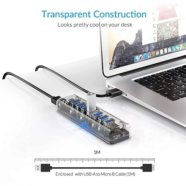 ORICO USB 3.0 Hub, 7 Ports USB3.0 Transparent Desktop HUB with Blue Indicator Light & Dual Port Power Supply with 1M Cable