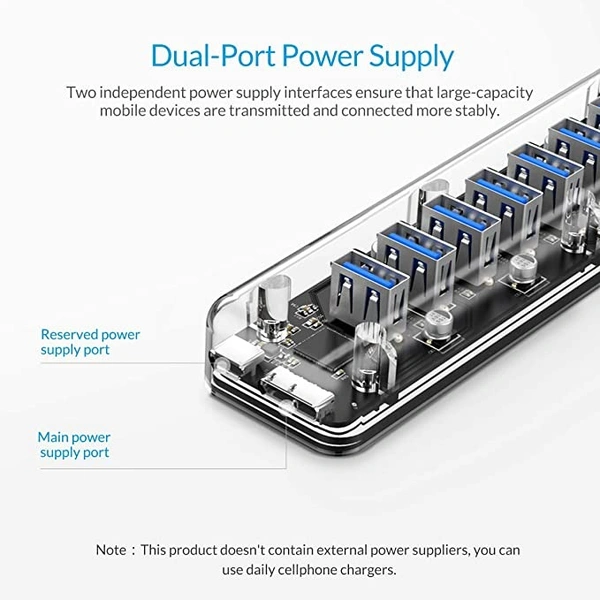 - DUAL- PORT POWER SUPPLY: Two independent power supply ports ensure some high-power devices to connect and transmit more stable.