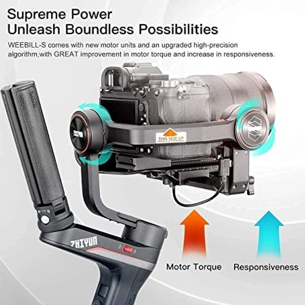 - Supreme Power. Superior Compatibility: WEEBILL-S comes with new motor units and an upgraded high-precision algorithm, with 300% improvement in motor torque and 50% increase in responsiveness. Combos like Sony A7Ⅲ+FE 24-70mm F2.8 and Canon 5D4+EF 24-70mm F2.8 can be perfectly balanced and stabilized on WEEBILL-S for smooth cinematic shots under different scenarios. Simply mount your camera onto WEEBILL-S and WEEBILL-S can auto tune its power to best adapt to your devices.